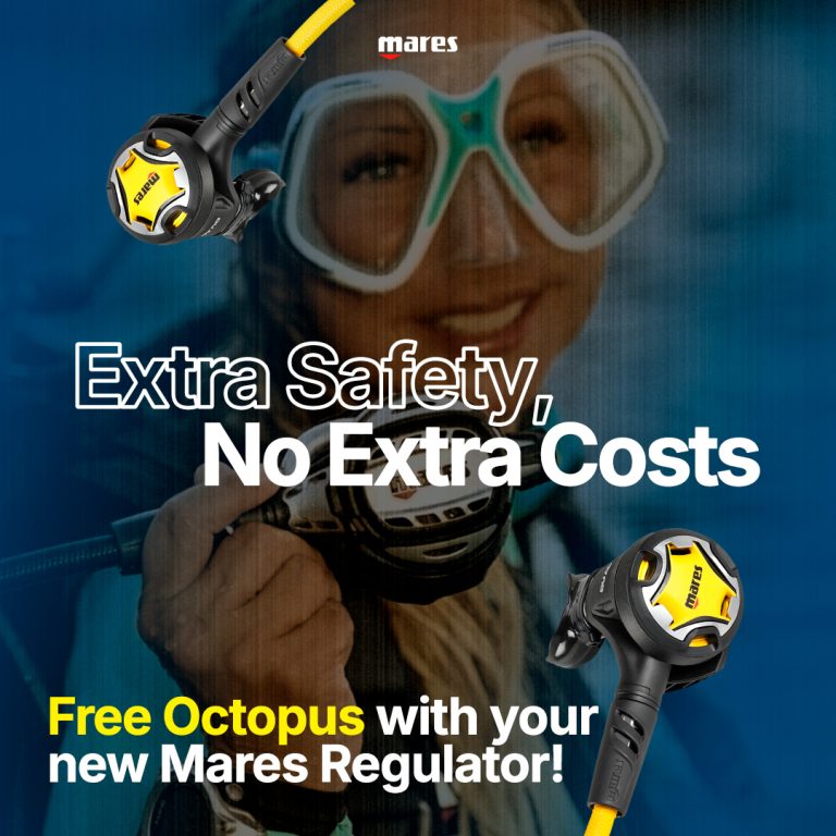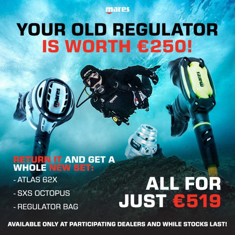 Bij aankoop van een MARES ademautomaat van het type ATLAS ADJ 62X TBP of ATLAS 62X of DUAL ADJ 62XEen GRATIS octopus DUAL ter waarde van 149,- Euro! Mis deze kans niet om je uitrusting te